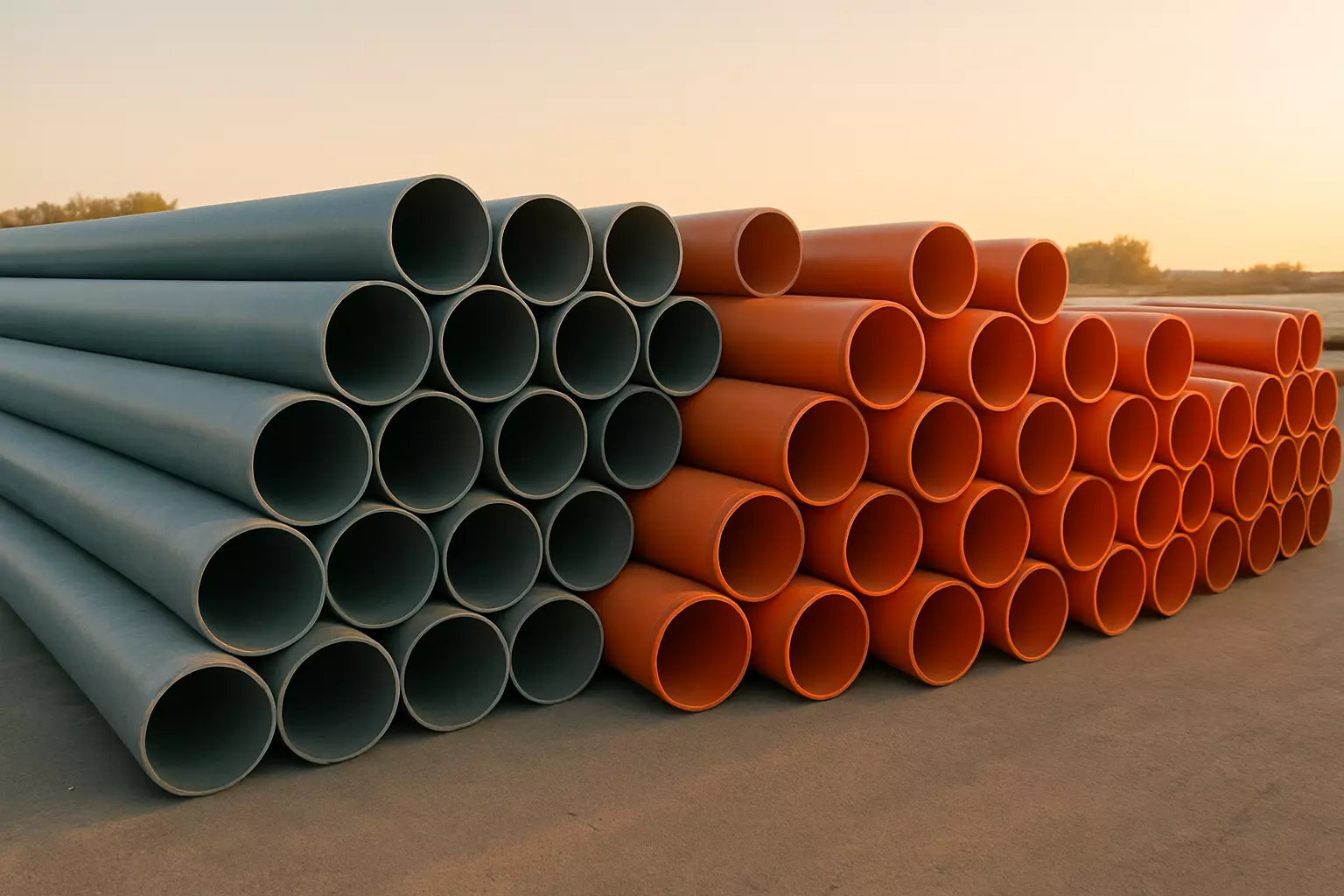 Серые и оранжевые трубы для сточных вод