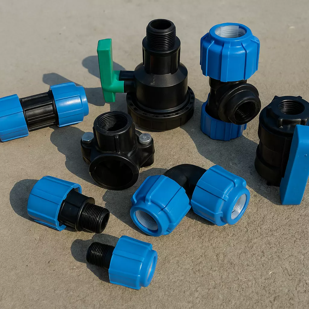 Пластиковые фитинги – легкие, недорогие и устойчивые к коррозии. Их применяют в системах холодного водоснабжения и полива. Главный плюс – простота монтажа и долгий срок службы.