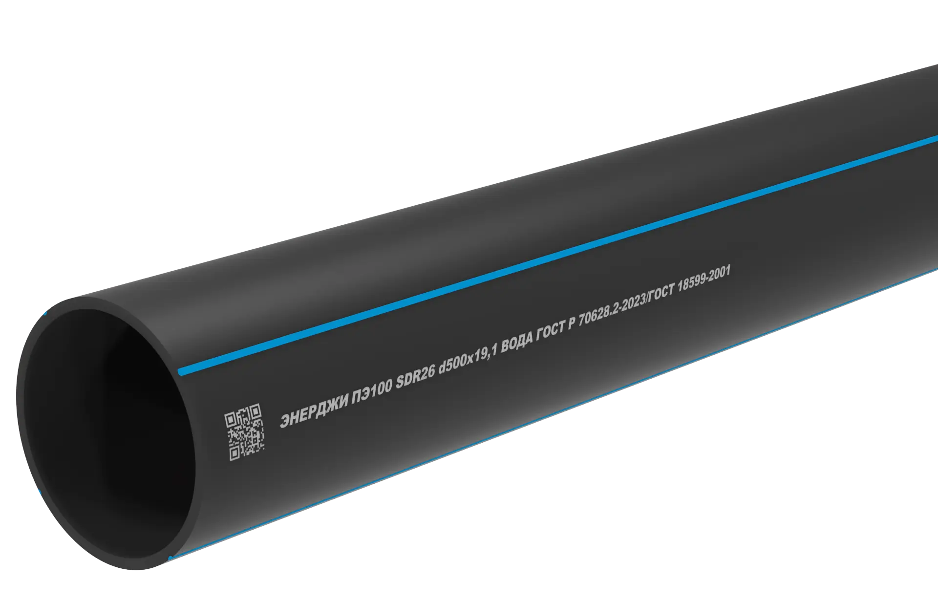 Труба питьевая ПЭ100 SDR 26 d500 х 19,1 мм по стандарту ГОСТ 18599-2001 (код товара: 020147) - однослойная напорная труба для воды монолитной конструкции из светостабилизированного полиэтилена марки ПЭ 100, ПЭ100 RC и ПЭ 100+.