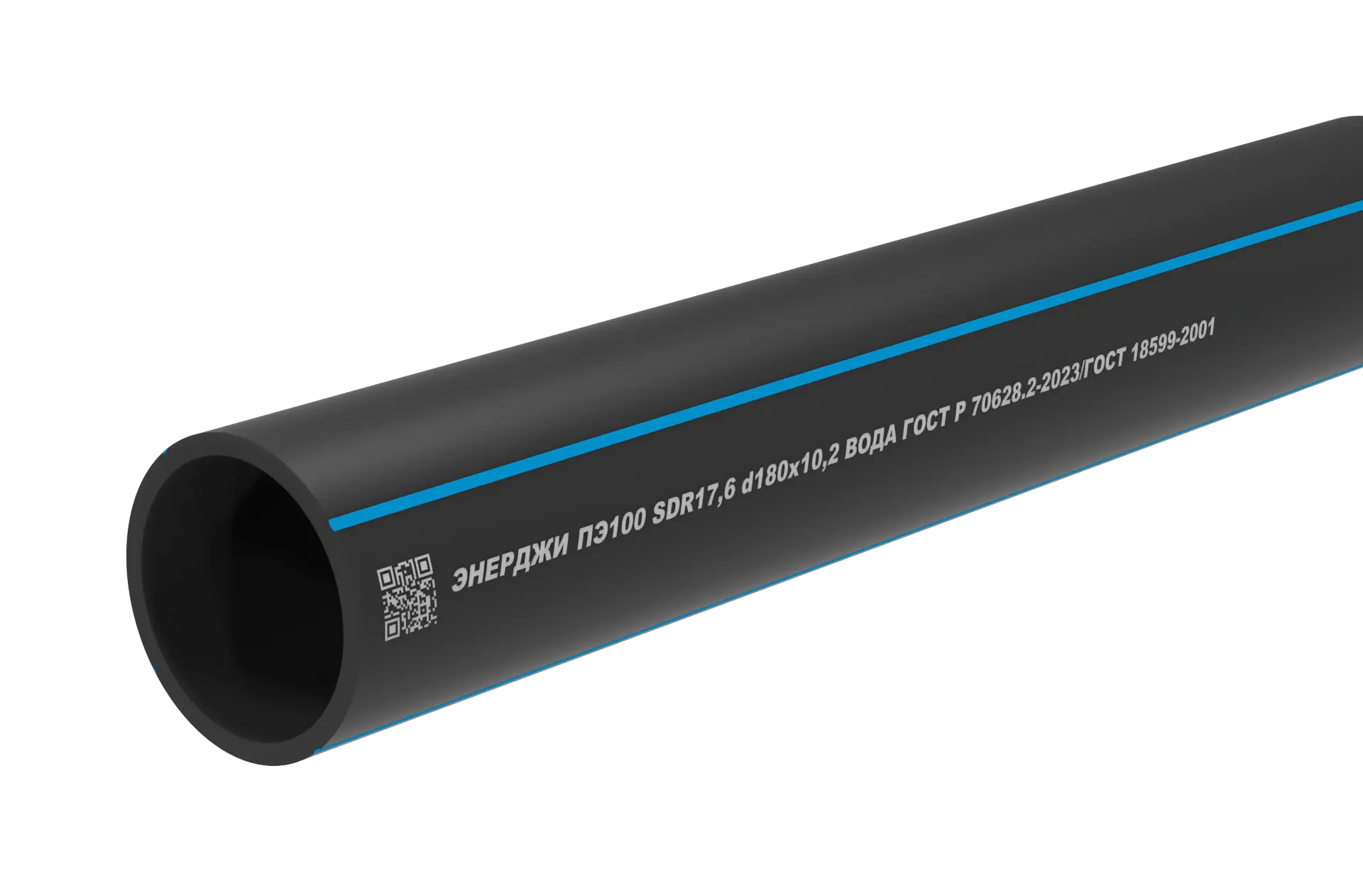 Труба питьевая ПЭ100RC SDR 17,6 d180 х 10,2 мм по стандарту ГОСТ 18599-2001 (код товара: 020282) - однослойная напорная труба для воды монолитной конструкции из светостабилизированного полиэтилена марки ПЭ 100, ПЭ100 RC и ПЭ 100+.
