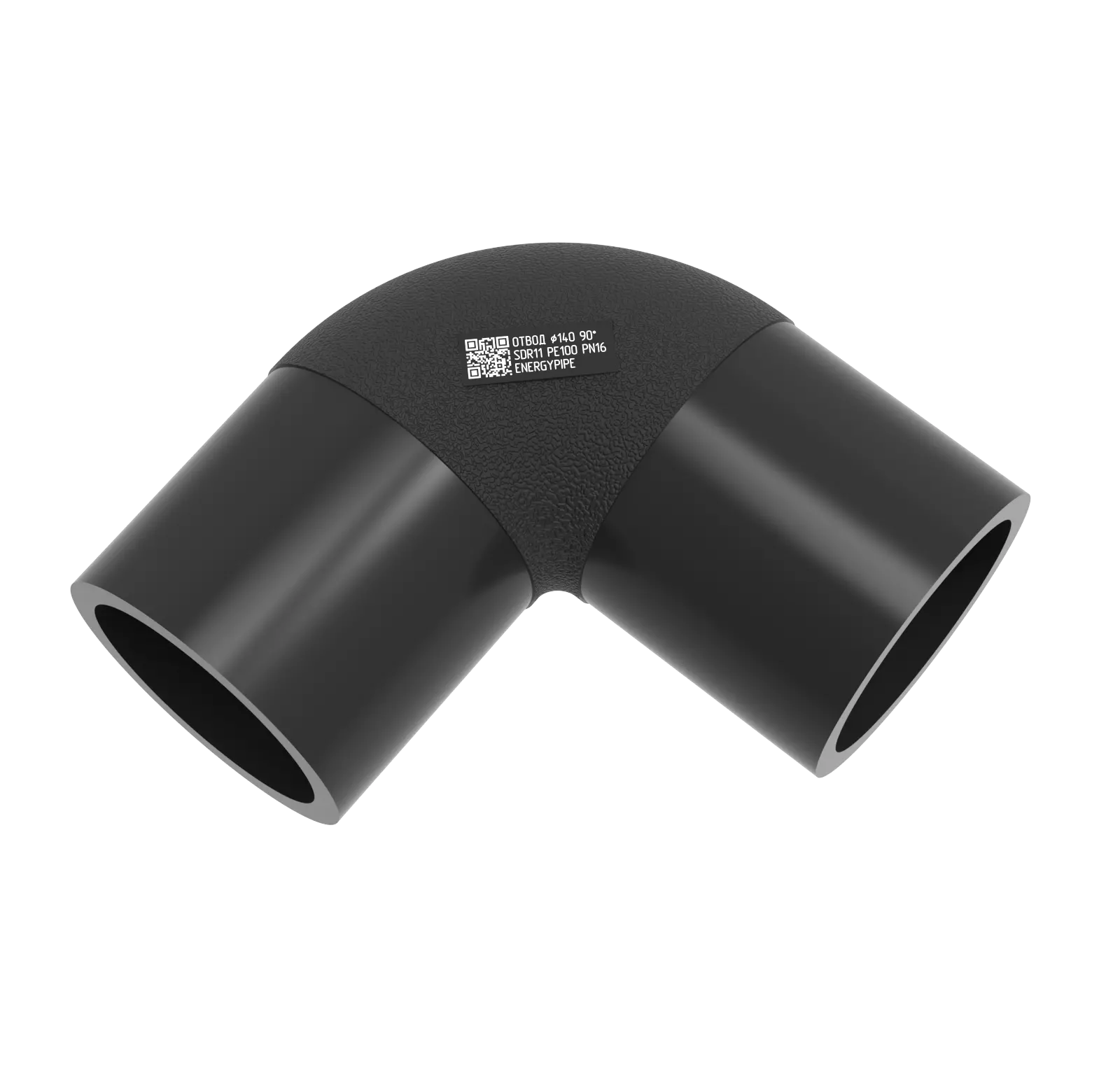 Литой полиэтиленовый отвод 90° диаметром d 160 мм SDR 11 изготовлен методом литья под давлением из устойчивого к УФ полиэтилена марки ПЭ100 высокой плотности.